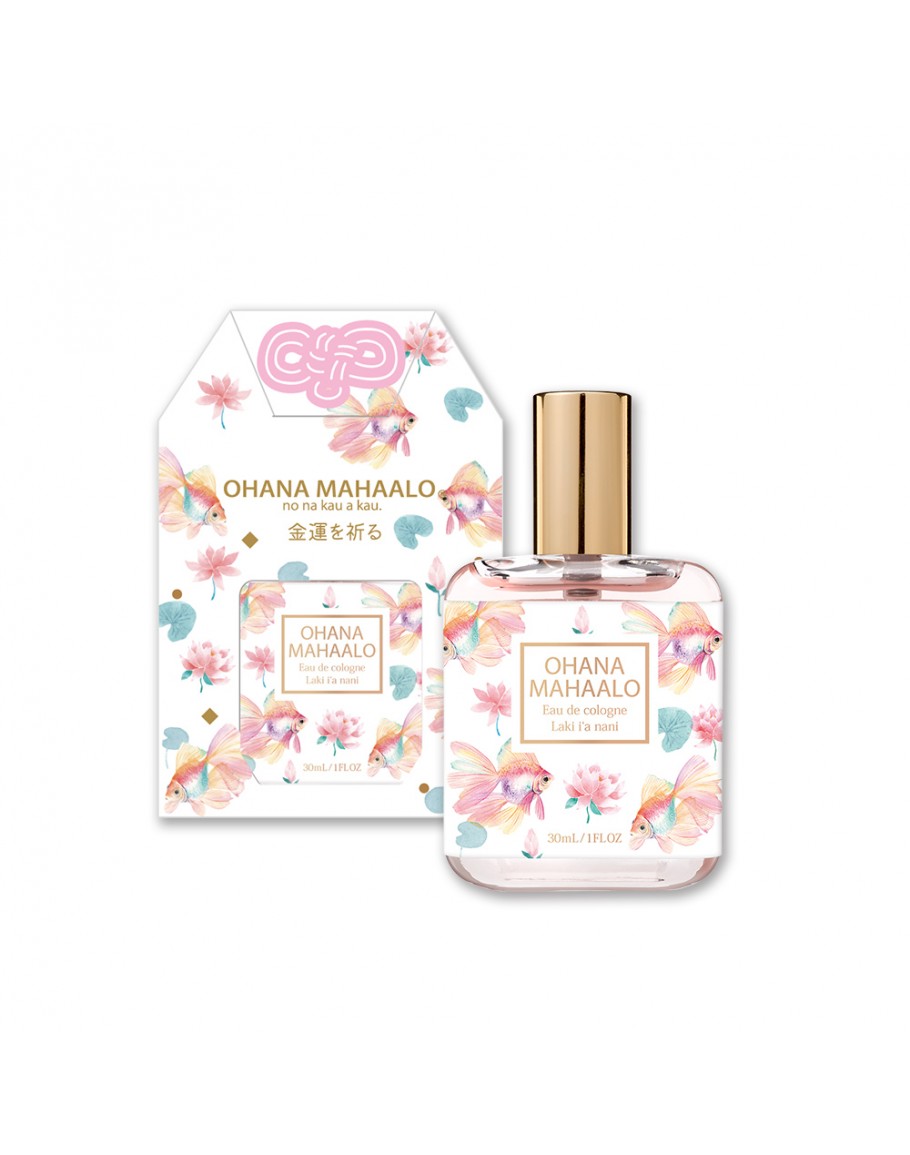 香調:佛手柑(香檸檬)、玫瑰、百合 「Laki」夏威夷語中意為好運,「i'a nani」是悠游的魚群。 清澈水波魚兒自由穿梭, 鱗片閃耀金色微光,預示豐盈財富的祝福 玫瑰與百合交織出和諧與人氣 一縷綠意盎然的木質香,如自然的低語 願你每日都滿溢豐盛與喜悅