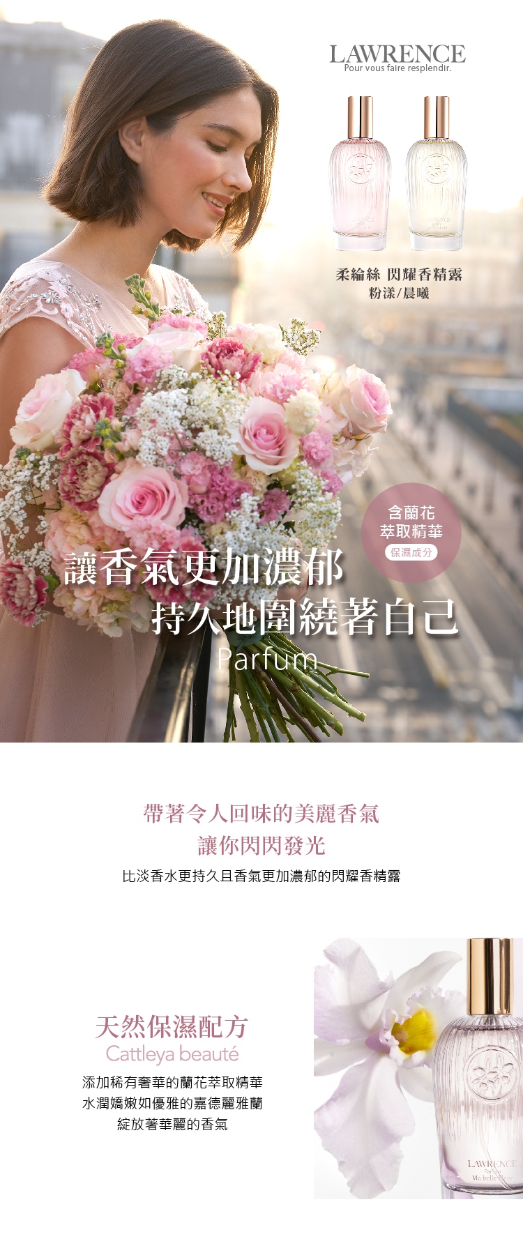 鈴蘭的清新細緻,黑醋栗與蘋果的酸甜 精心包裏在蘭花的優雅香氣中 塞納河畔的晚風吹起你翩翩的萬般姿態 你是那朵開在我心上最可人的嘉德麗雅蘭